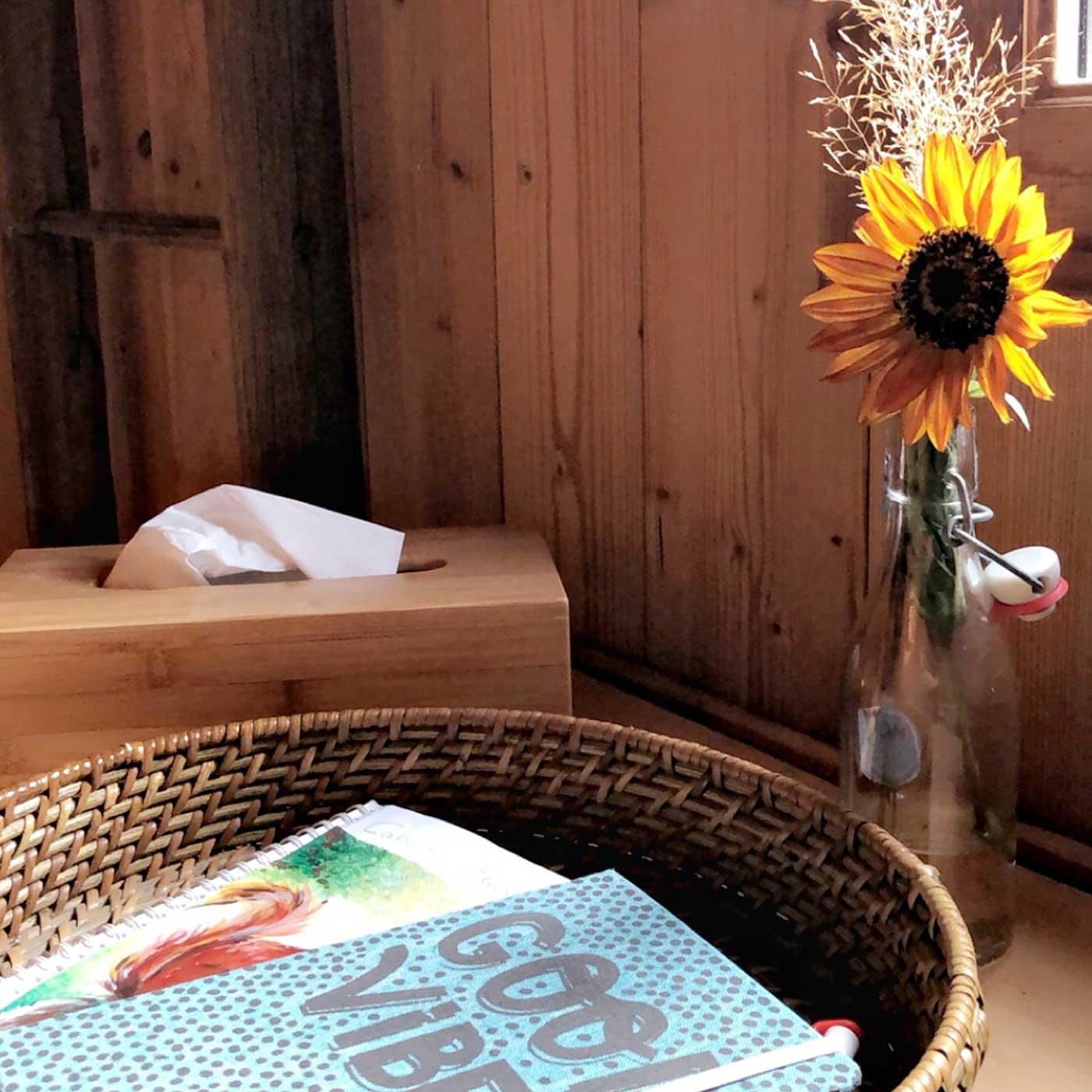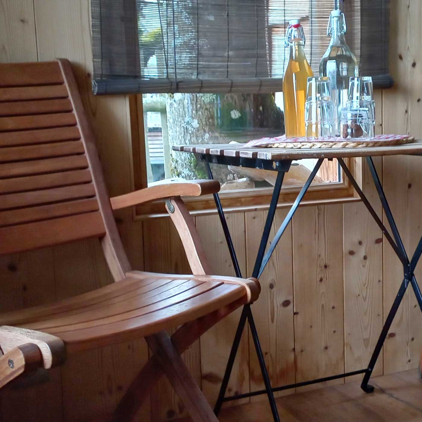 N’inclus pas : serviettes pour la douche (sinon location 5€/serviette possible), chaussons pour l’intérieur, toilettes sèches mais il y a les sanitaires se trouvant dans l'espace commun à 5 m de la Cabane.