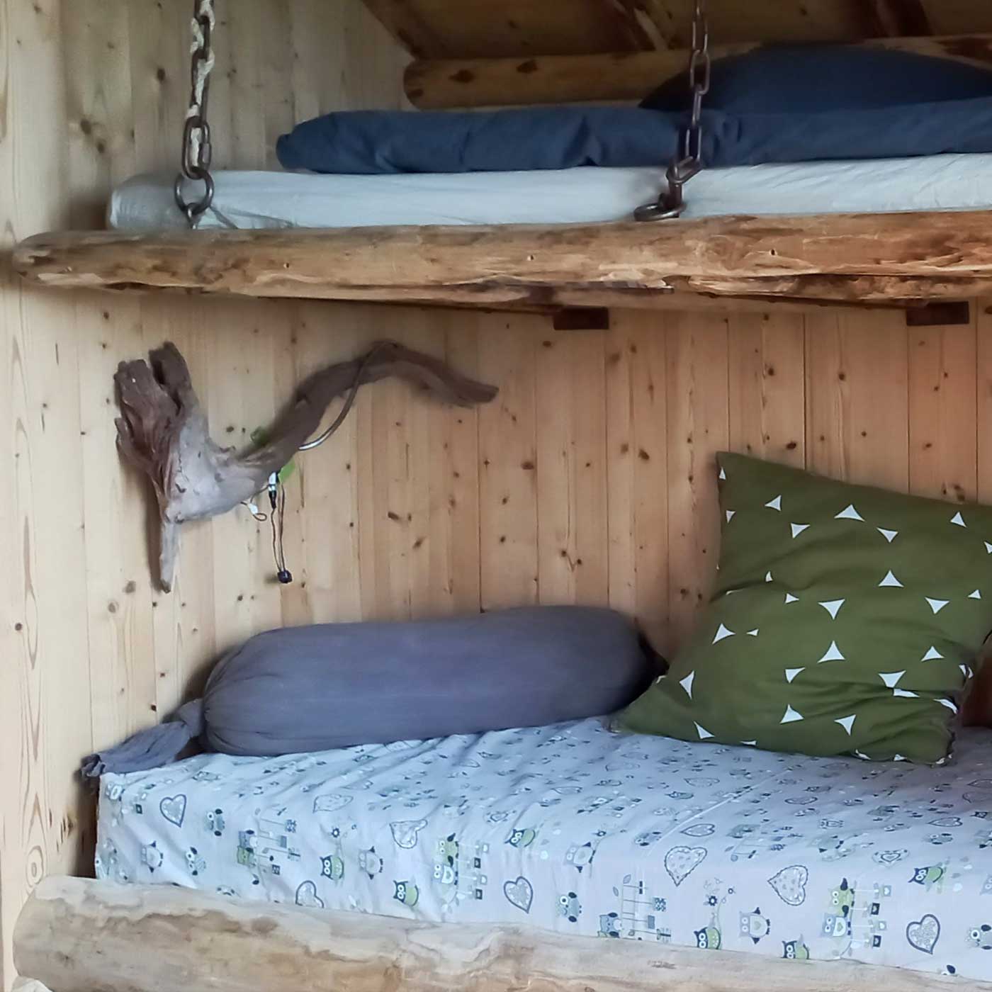 Équipement: la cabane comprend un lit double 140/200, deux lits simples superposés de 90/190 et un lit en mezzanine de 90/190