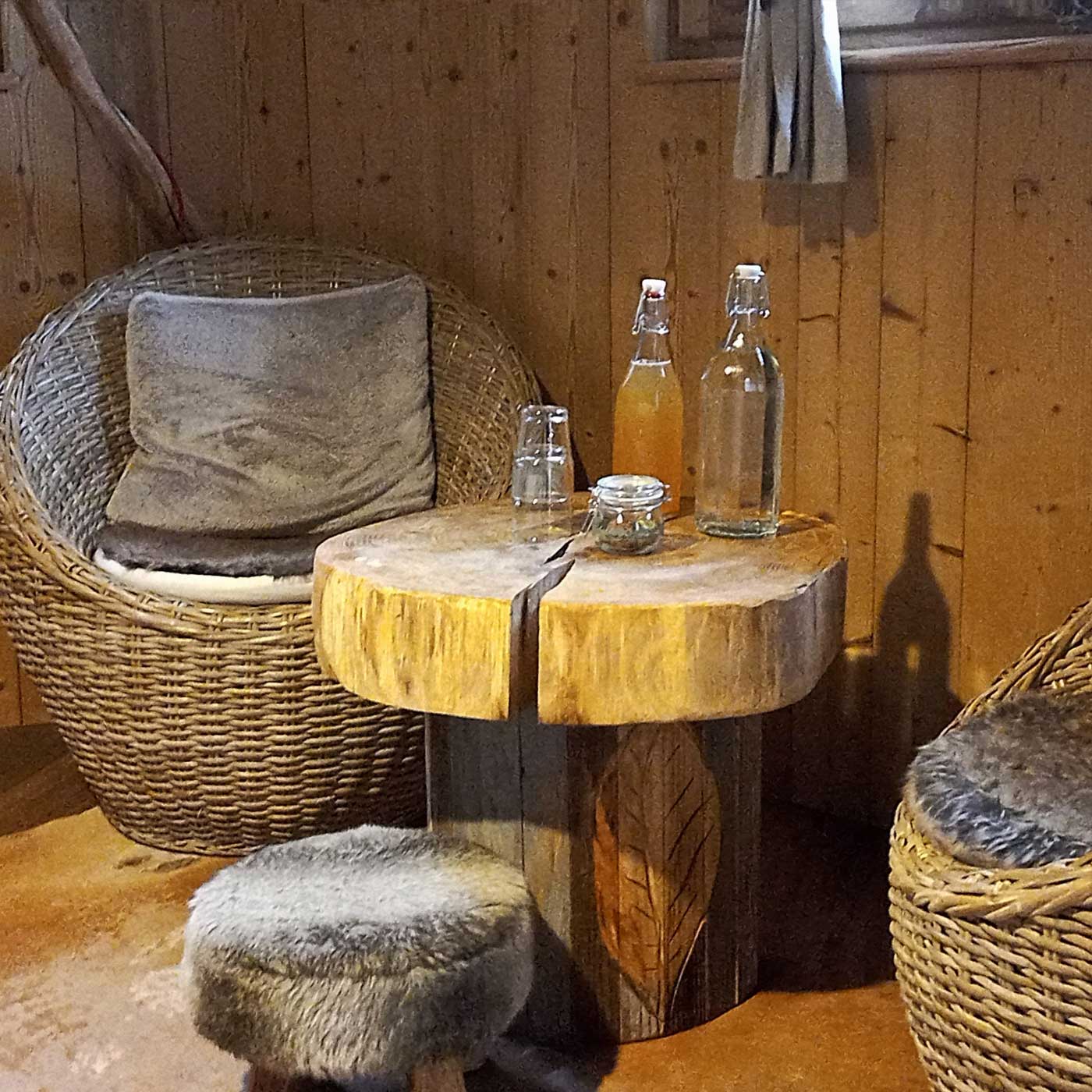 Inclus : linge de lit, plaids, chauffage, électricité, machine à café et bouilloire, grignotis et boisson maison offerts/p>, toilettes sèches et il y a aussi les sanitaires se trouvant dans l'espace commun à 10 m de la Cabane.