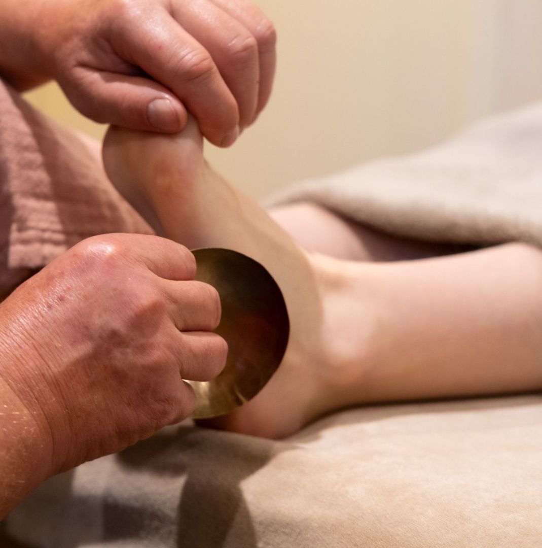 Le massage au bol kansu est une technique de massage traditionnelle indienne consistant à masser les pieds avec du ghee (beurre clarifié) et le bol qui est constitué d’un alliage de 5 métaux spéciaux dont le Cuivre, le Zinc et le bronze.