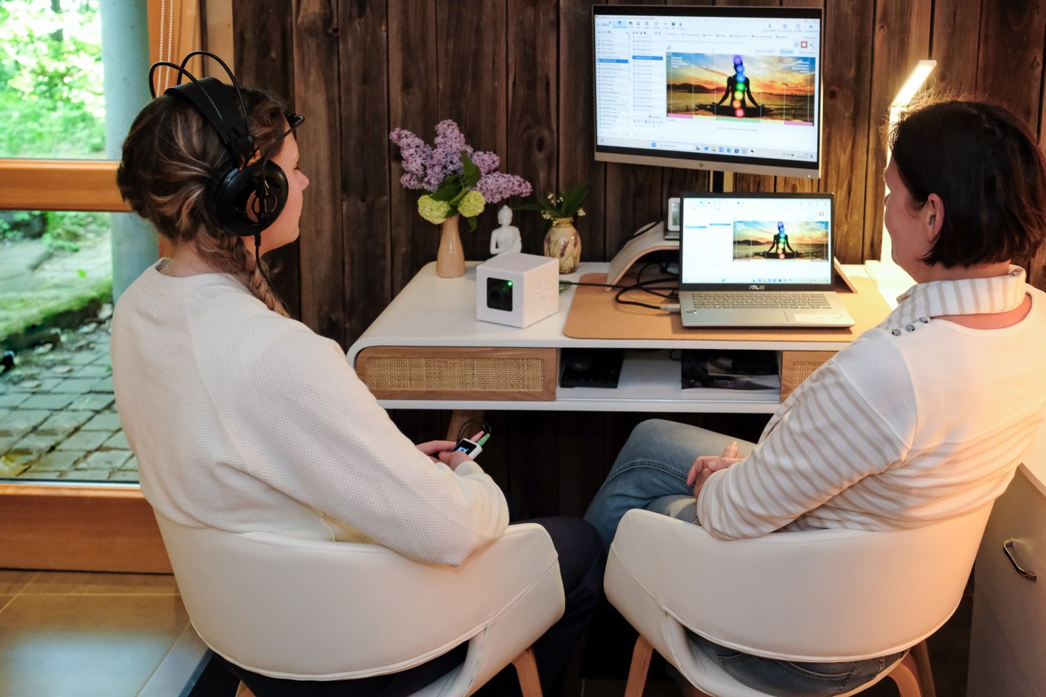 Accompagné d'un massage sonore au début, pendant et à la fin de la séance pour vous inviter au voyage et à revenir en douceur.